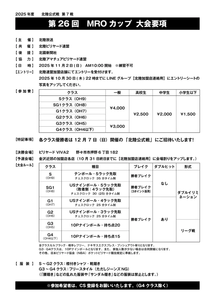 • 公益社団法人 日本ビリヤード協会 加盟 北陸支部